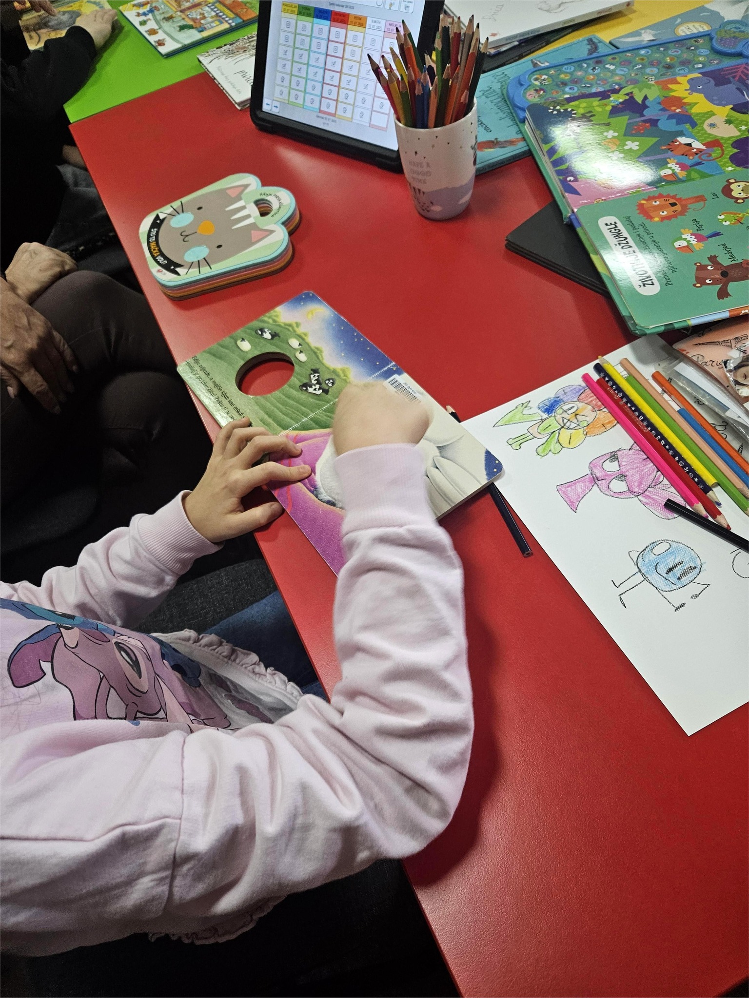 U posjet nam je došao razredni odjel za djecu s autizmom, njihove odgajateljice Danijela Babić i Andrijana Čeliković Glavičić te voditeljica odjela Melita Dragić. Zajedno smo se zabavili crtajući te istražujući taktilne, zvučne i druge slikovnice koje potiču osjetila i maštu.
