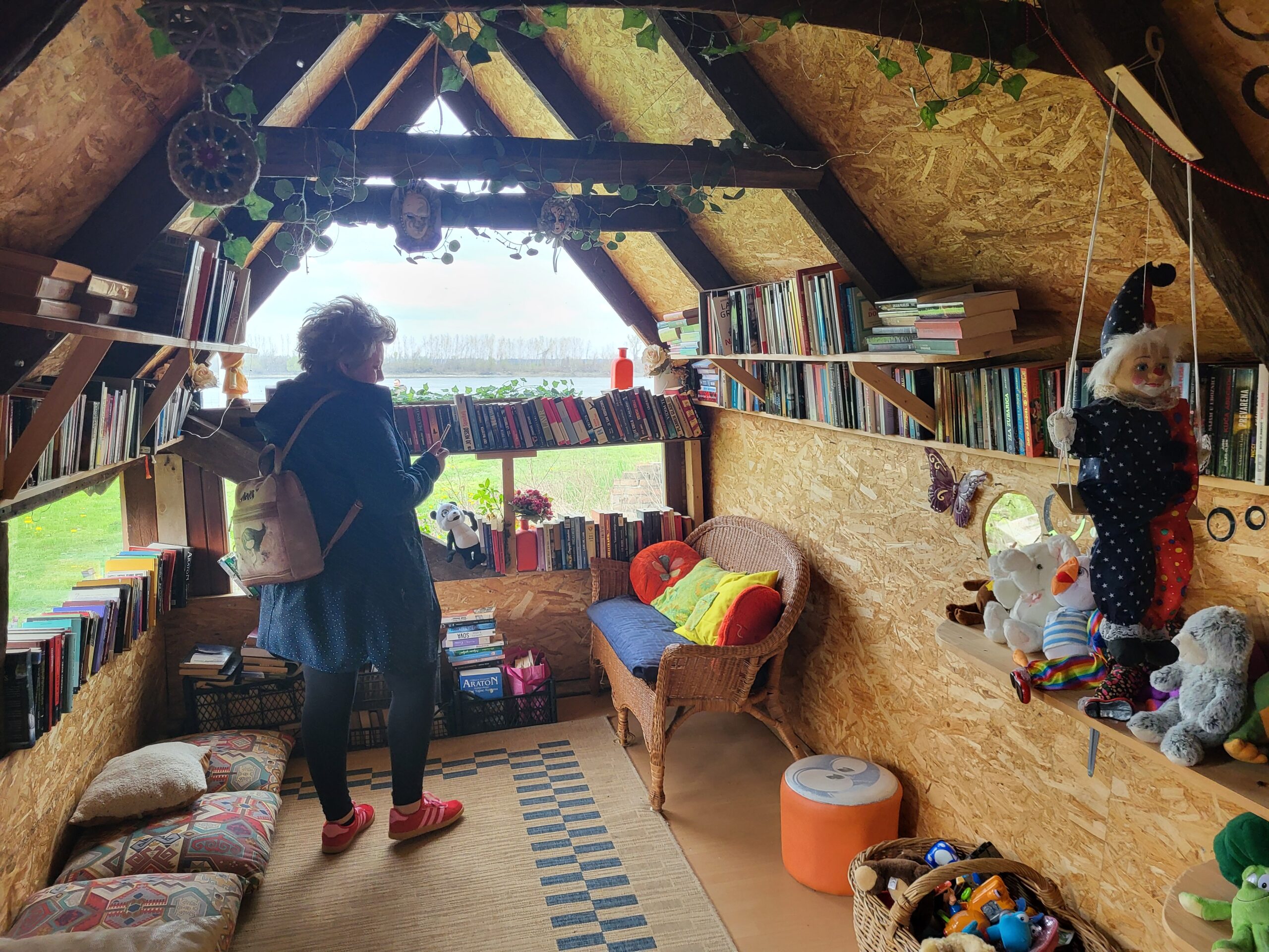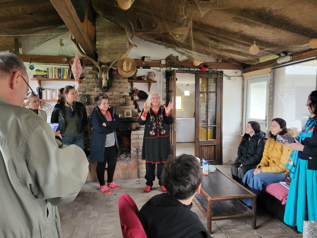 Nakon Vučedola, zaputili smo se u Šarengrad gdje je smješten BiblioČardak, mala slobodna knjižnica. Susret s prof. Dinkom Juričić podsjetio nas je koliko kulturni život jedne sredine ovisi o entuzijazmu i predanosti. U manjim mjestima kultura nije institucionalna obveza, nego osobna inicijativa. Djelovanje prof. Dinke Juričić i ideja BiblioČardaka pokazuju kako knjiga može pronaći put do ljudi i izvan formalnih sustava. Ova, prostorom mala, ali dušom neograničena slobodna knjižnica, uključena je u Mrežu malih slobodnih knjižnica Hrvatske, a nastala je iz jednostavne, ali snažne ideje – da knjiga treba biti dostupna svima. U tom smislu, ona ne predstavlja alternativu knjižnicama, nego njihov prirodan produžetak.