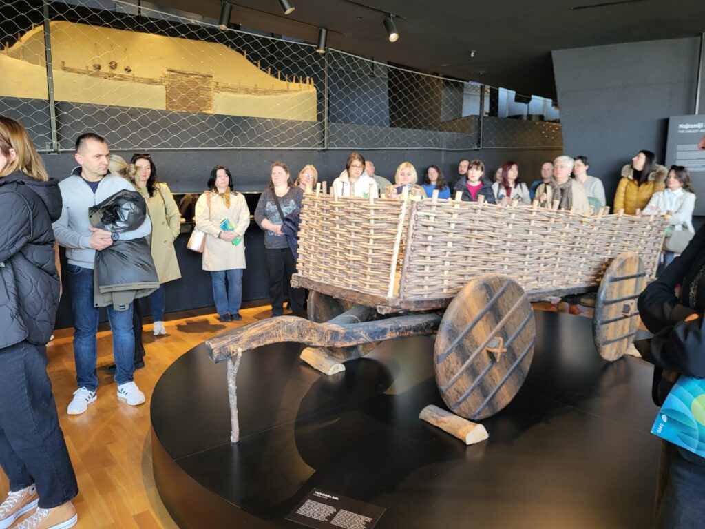 Nakon Vinkovaca put nas je odveo u Muzej vučedolske kulture koji ne ostavlja dojam klasičnog muzeja, nego prostora u kojem se prošlost promišlja i interpretira. Vučedolska kultura, stara više od pet tisuća godina, pokazuje razinu znanja i organizacije koja i danas izaziva zanimanje, od razvijene metalurgije do simboličkih sustava koji upućuju na složen način razumijevanja svijeta. U tom smislu, muzej i knjižnica dijele sličnu ulogu: oba prostora posreduju znanje, ali ga istodobno i tumače. Muzej, arhitektonski uklopljen u krajolik iznad Dunava, primjer je suvremenog pristupa prezentaciji baštine, spoj znanosti, tehnologije i narativa koji posjetitelju omogućuje iskustveno razumijevanje prošlosti.
