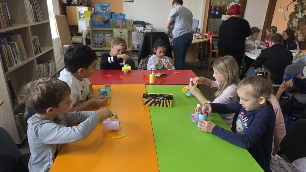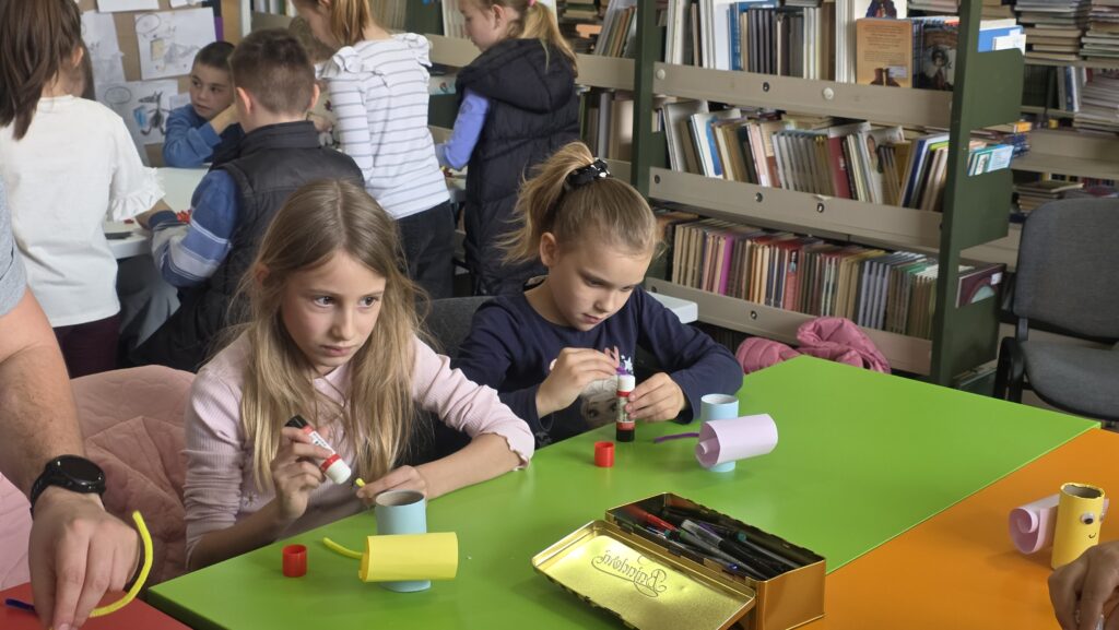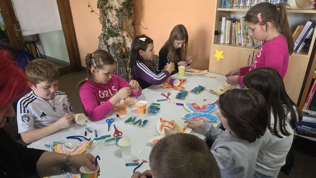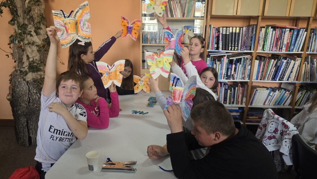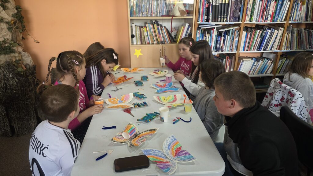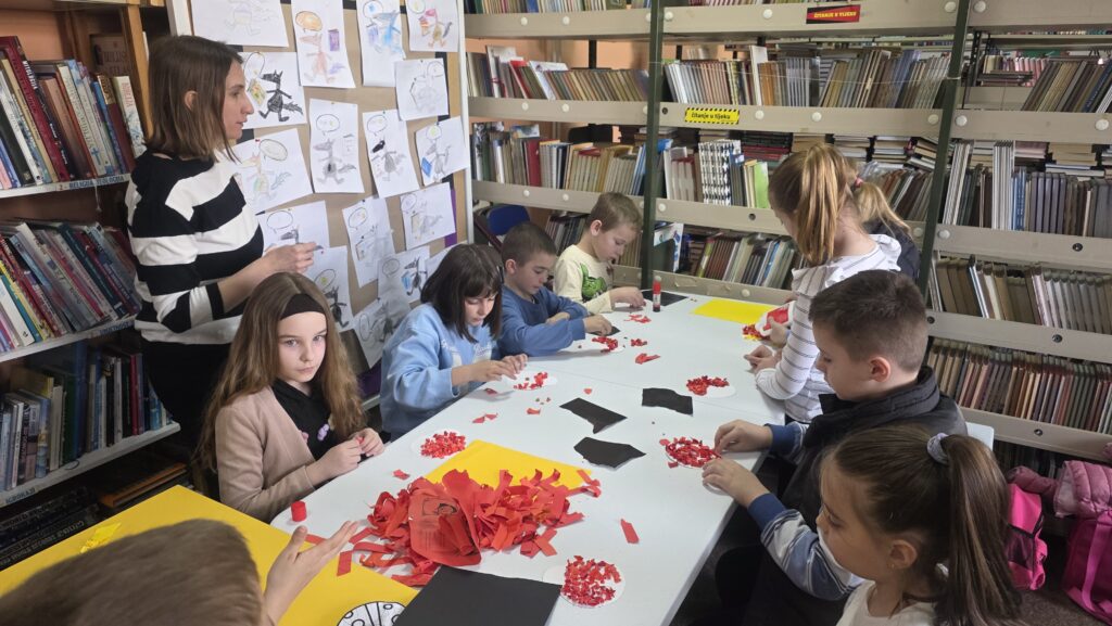 Radionicu je vodila knjižničarka Lucija Marić, a započela je interpretacijom pjesama dječje književnice Jadranke Čunčić Bandov, koja je poslužila kao poticaj za kreativni rad. Inspirirani pročitanim stihovima i proljetnim motivima, učenici su izrađivali likovne radove u obliku bubamara, leptira i puževa.